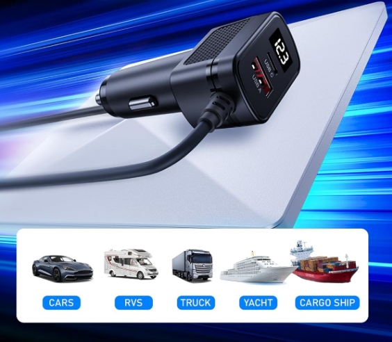 Zasilacz samochodowy Starlink Mini, ładowarka samochodowa 12 V–24 V z portami USB-C i USB-A, kabel zasilający 3 w 1, wodoodporny przewód o długości 3m z wyświetlaczem LED napięcia, Starlink